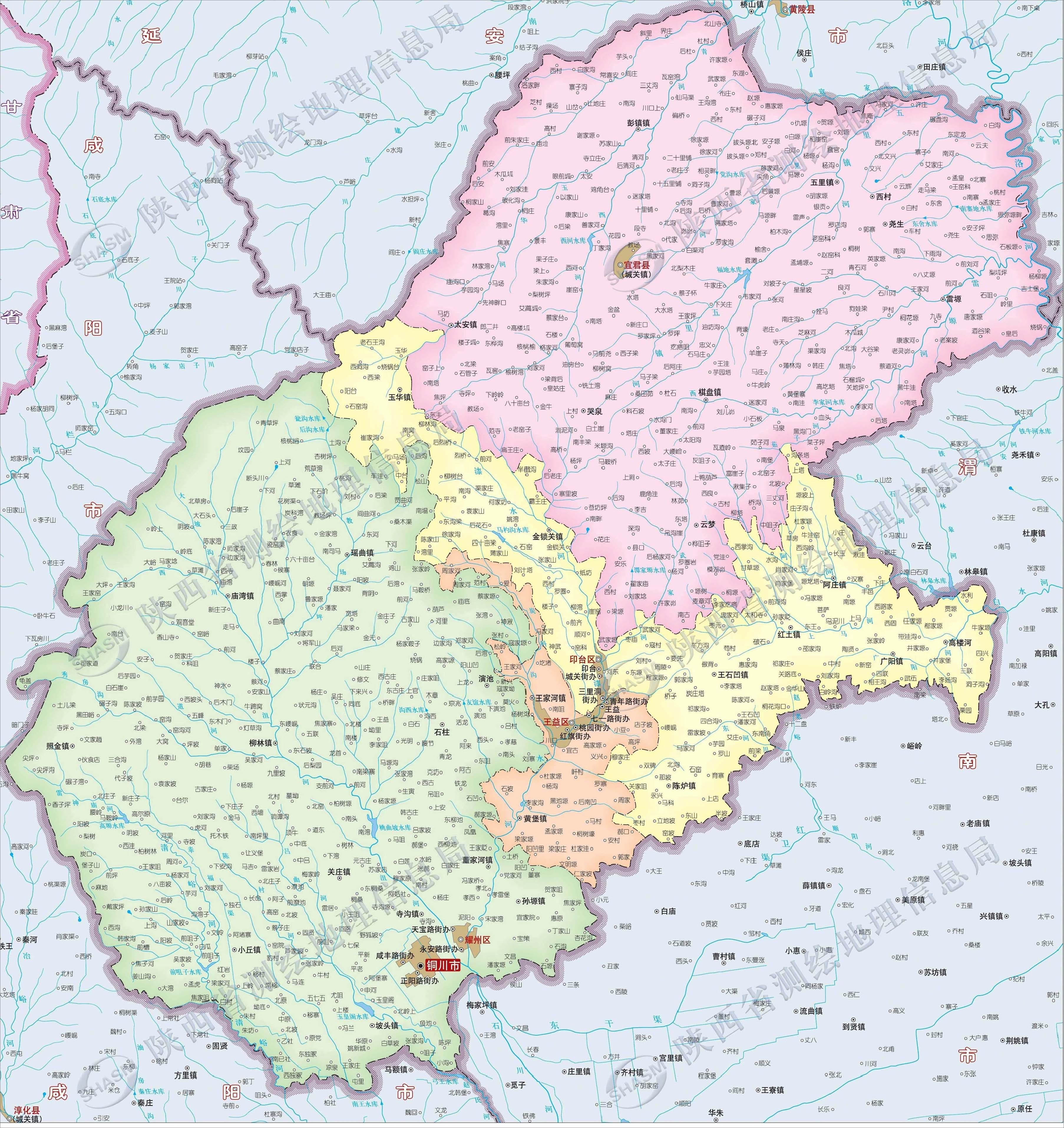 銅川市轄3個區(qū)、1個縣: