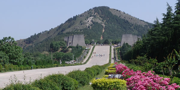 乾陵,是中國(guó)乃至世界上獨(dú)一無(wú)二的一座兩朝帝王、一對(duì)夫妻皇帝合葬陵。里面埋葬著唐王朝第三位皇帝高宗李治和中國(guó)歷史上唯一的女皇帝武則天,是全國(guó)重點(diǎn)文物保護(hù)單位。建于公元684年,歷時(shí)23年才修建完成。乾陵修建于公元684年,經(jīng)過(guò)23年的時(shí)間,工程才基本完工。氣勢(shì)雄偉壯觀。乾陵位于陜西咸陽(yáng)市乾縣城北6公里的梁山上。梁山是圓錐形石灰?guī)r山體,共有三峰,北峰最高,海拔1047.9米,乾陵就在北峰之上。梁山南面兩峰較低,東西對(duì)峙,中間為司馬道,故而這兩峰取名叫“乳峰”。據(jù)史書(shū)記載,陵墓原有內(nèi)外兩重城墻,四個(gè)城門(mén),還有獻(xiàn)殿闕樓等許多宏偉的建筑物?碧奖砻鳎簝(nèi)城總面積240萬(wàn)平方米。城墻四面,南有朱雀門(mén),北有玄武門(mén),東有青龍門(mén),西有白虎門(mén)。從乾陵頭道門(mén)踏上石階路,計(jì)537級(jí)臺(tái)階,其臺(tái)階高差為81.68米。走完臺(tái)階即是一條平寬的道路直到“唐高宗陵墓” 碑,這條道路便是“司馬道”。兩旁現(xiàn)有華表1對(duì),翼馬、鴕鳥(niǎo)各1對(duì),石馬5對(duì),翁仲10對(duì),石碑2道。東為無(wú)字碑,西為述圣記碑。有王賓像61尊,石獅1對(duì),周圍還有17座陪葬墓。“唐高宗陵墓”墓碑,高2米,是陜西巡府畢源為高宗所立,原碑已毀,現(xiàn)在這塊碑是清乾隆年間重建的。此碑右前側(cè)另一塊墓碑,是郭沫若題寫(xiě)的“唐高宗李治與則天皇帝之墓”12個(gè)大字。另外在南門(mén)外有為高宗皇帝和武則天歌功頌德的《述圣記碑》和《無(wú)字碑》二通以及參加高宗葬禮的中國(guó)少數(shù)民族首領(lǐng)和友好國(guó)家使臣的石刻像六十一尊。在中國(guó)歷史上,陵前石刻的數(shù)目、種類和安放位置是從乾陵開(kāi)始才有了固定制度的,一直延襲到清代,歷代大同小異。