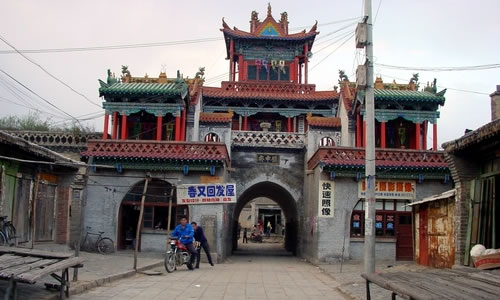 高家堡古城:唐屬豐州地,舊稱飛鴉川、彌川。城池始建于明正統(tǒng)四年(1439),原隸屬佳州,清末劃歸神木。該城位于神木縣城西南海50公里的禿尾河?xùn)|岸,西北距明長(zhǎng)城約5公里,原為夯筑土城,萬(wàn)歷三十六年(1608)用磚包砌,清乾隆十五年(1750)、三十三年(1768)兩度重修,后多次修葺。該城平面呈長(zhǎng)方形、東南墻均長(zhǎng)311米,南北墻均431米,殘高6.5—9.1米,基寬7.52米。城墻上部建有1米高的女墻,間有垛口、嘹望洞。北城頭修有三官樓,東南角建有魁星樓。現(xiàn)除魁性樓、女墻、垛口、嘹望洞被壞外,其余的均保存完好。另東、南、西墻各辟一卷門,并筑有甕城,現(xiàn)城門的敵樓、嘹望臺(tái)和南門已破壞。城內(nèi)原有的中興樓(1988年被縣人民政府公布為重點(diǎn)文物保護(hù)單位)、城隍廟、財(cái)神廟、五道廟、祖師廟、西門寺、貞節(jié)牌坊等古建筑,現(xiàn)僅存中興樓和財(cái)神廟,城內(nèi)街道以中興樓為軸心,向東西輻射為東西街,向陽(yáng)北南北輻射為南街和北巷。明、清到民國(guó)初,南街最為繁華,至今大部分鋪面保存完好,東、西、南街各通有巷道。居民建筑群為典型的北方構(gòu)筑風(fēng)格。既有四合院,如北巷的李家大院;又有前庭大院,如東街的盧家大院、西街的韓家大院;還有樓院,如十字巷的李家樓院,同心巷的劉家樓院等。高家堡古城是神木縣乃至整個(gè)陜北較為完整的一座城堡,且有獨(dú)具特色的保護(hù)價(jià)值,神木縣人民政府已擬定將該城列為重點(diǎn)文物保護(hù)單位。