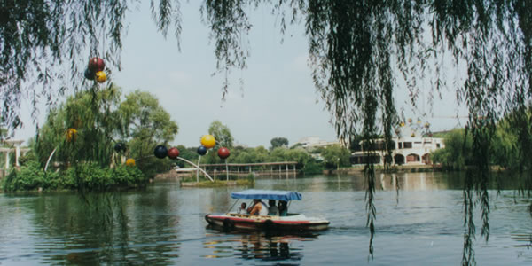 怡湖園:位于成都市北郊青白江新建成綿高速公路旁的怡湖公園,距離成都市區(qū)約30公里,占地約213畝,其中湖面積約70畝。該園于1986年由青白江區(qū)建委動工興建,短短兩年多時間建成,于1988年正式對外開放。怡湖公園屬于現(xiàn)代化的大型綜合公園,該園以其強(qiáng)烈的現(xiàn)代化氣息的城市園林風(fēng)格建筑和異域情調(diào)吸引了成千上萬的中外游客,上海學(xué)林出版社曾將該園編入面向國內(nèi)外發(fā)行的《中國旅游名勝》畫冊。該園大門,設(shè)計精巧,造型獨(dú)特,雅致舒暢,極富象征意義。