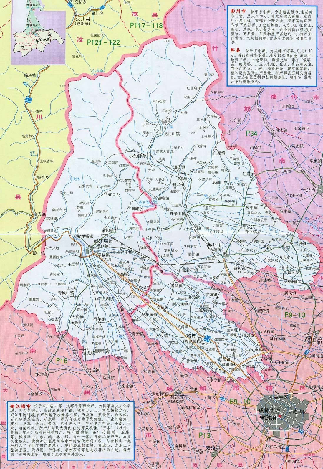 都江堰市轄17個(gè)鎮(zhèn)、2個(gè)鄉(xiāng):