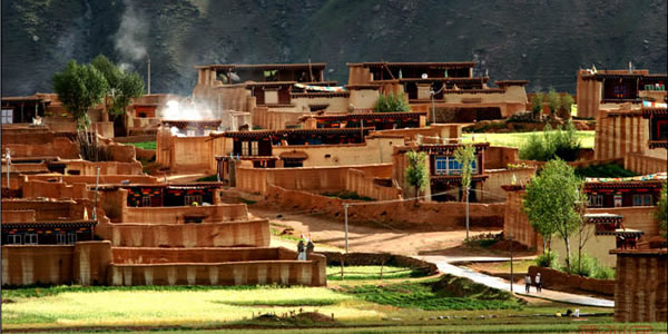 營官藏寨:在青山腳下,綠樹環(huán)抱,小溪流徑之地,遠(yuǎn)遠(yuǎn)地便能看見屋檐下、窗戶的壁墻上勾畫著象征純潔白線的藏寨民居。一幢幢藏寨民居那么和諧地與大自然構(gòu)成一幅美麗的風(fēng)景。