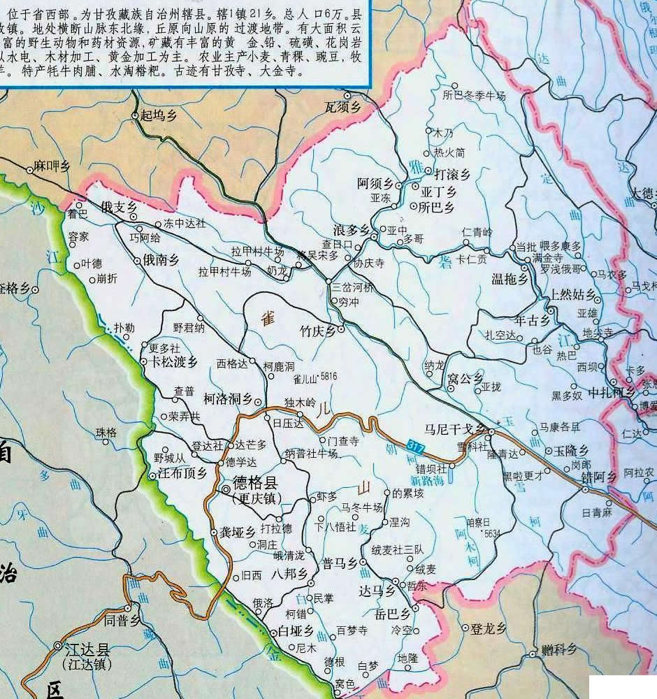 德格縣轄1個(gè)鎮(zhèn)、25個(gè)鄉(xiāng):