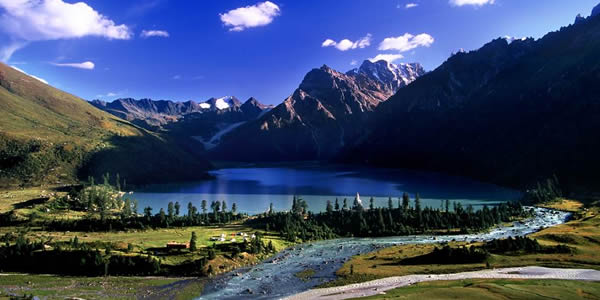 雀兒山屬沙魯里山脈北段,地勢(shì)呈西北——東南走向,是典型的冰川地貌,海拔5000米以上的山峰有30座,最高峰絨麥俄扎,海拔6168米,終年積雪不化,是四川省第四高峰。雀兒山下的新路海風(fēng)景區(qū)在川藏公路之側(cè),距德格縣城100公里,海拔4040米。新路海平均深度10米,最深處15米,是甘孜州著名的冰蝕湖。水源由雀兒山冰川和積雪消融供給,湖尾流出的溪流為措曲河源頭之一。新路海藏語各玉龍拉措,意為“傾心之湖”,相傳格薩爾王傳的愛妃珠牡來到湖邊,被秀麗的湖光山色和幽靜的環(huán)境所吸引,緋徊湖邊留連忘返。后人為了紀(jì)念珠牡,取名“玉龍拉錯(cuò)”。玉龍拉錯(cuò)及周圍生態(tài)原始、完整、晶瑩的冰川從海拔五千米的粒雪直瀉湖濱草原,極為壯觀。湖泊周圍由高原云杉、冷杉、柏樹、杜鵑樹和草甸環(huán)繞。藍(lán)天白云,雪峰皚皚,冰川閃爍,青山融融,綠草茵茵,波光粼粼。湖岸珍禽異獸出沒,湖中野鴨成群,魚兒游弋,夏秋季節(jié),山花爛熳,爭(zhēng)芳斗艷,真可謂世間仙境。