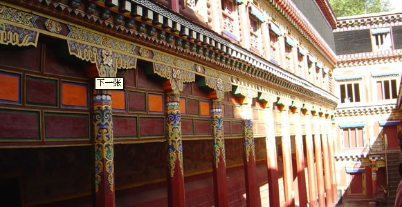 步入大堂內(nèi),穹頂高古,富麗堂煌,四壁有古壁畫,雕刻栩栩如生。寺內(nèi)高僧云集,傳道布經(jīng)誦咒朝拜者絡(luò)繹不絕,整個(gè)寺院經(jīng)聲終年朗朗。