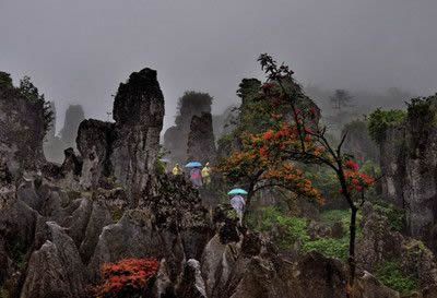 華鎣山的石柱雄壯秀拔,石生樹(shù)、樹(shù)纏石等自然景觀隨處可見(jiàn),旅游區(qū)內(nèi)的植被更是枝葉繁茂、郁郁蔥蔥。經(jīng)初步估算旅游區(qū)內(nèi)的植被種類竟達(dá)304種之多。珍稀的香果樹(shù)、穗花杉等多種國(guó)家一、二級(jí)的保護(hù)植物似珍珠般的散落于旅游區(qū)。山下以松樹(shù)、杉樹(shù)為主;山上以藤蔓、稀有樹(shù)種為主;茂密的白夾竹、茨竹、方竹、灌木、喬木漫山遍野,掩映于奇特的石林之中,植被覆蓋率達(dá)95%以上的旅游區(qū)格外耀眼壯觀。而個(gè)別的罕見(jiàn)的植物植物學(xué)家們至今難以對(duì)它命名,從而更增加華鎣山神秘的色彩。