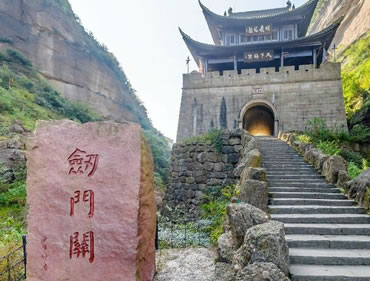 劍門關(guān)因唐代大詩(shī)人李白《蜀道難》中“劍閣崢嶸而崔嵬,一夫當(dāng)關(guān),萬(wàn)夫莫開”而聞名。它集蜀道文化、三國(guó)文化、戰(zhàn)爭(zhēng)文化、紅色文化于一體。