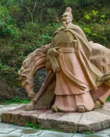 孔明立關(guān)像南,有尊雕塑是蜀漢先主劉備。劉備在成都定都以后,于建安二十二年(217年)設(shè)立了劍閣縣,隸屬于劍門關(guān),加強(qiáng)了對(duì)劍閣的防守,以劍閣為中心,將漢中到成都的一千多里連成了一個(gè)整體,保證從成都至梓潼,穿劍閣過(guò)葭萌、白水,到陜西勉縣陽(yáng)安關(guān)、漢中這條劍閣道的安全和暢通,為以后諸葛亮出祁山、姜伯約伐中原創(chuàng)造了條件打下了基礎(chǔ)。據(jù)有關(guān)資料記載,劉備在稱帝之前,就四次往來(lái)于劍門關(guān),加上《三國(guó)演義》第六十五回?cái)⑹龅膭湓谶M(jìn)軍成都擊劉璋途中,又返回葭萌關(guān)看張飛和馬超廝殺,共往返六次之多。