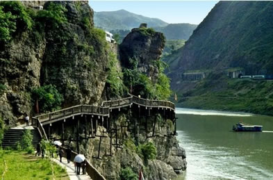 據(jù)說(shuō),三國(guó)時(shí)期,蜀丞相諸葛亮率軍伐魏,路經(jīng)大劍山,見山勢(shì)險(xiǎn)峻,便令軍士鑿山巖,架飛梁,搭棧道,助其六出祁山,北伐曹魏。雖然古棧道早已湮沒在歷史的長(zhǎng)河,后來(lái)又重新建在山峰之上。