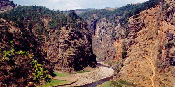 小 特色景色 會東素有“小三峽”之稱的兩岔河位于會東縣會東鎮(zhèn)的普發(fā)、秧發(fā)、水塘三村之間。據(jù)史料記載,蜀漢建興三年諸葛亮南征途中,與耶魯王(孟獲)交戰(zhàn)的歷史遺址石馬槽就位于此地。同時,也有關(guān)于元朝末年,張三豐為尋求一民間藥引,跋山涉水前往當(dāng)時的普雄寨(即現(xiàn)在的普發(fā)村),攀爬于懸崖峭壁之間采集猴漬而傳醫(yī)濟(jì)世的傳說。這里依山傍水、山清水秀、險峰相連,在雄偉壯觀之勢盡顯其中。特別是兩岸溶洞中的鐘乳石形態(tài)萬千、色澤艷麗,凡到過大小三峽的人都譽(yù)之為“賽三峽”,認(rèn)為這里無論景色或是雄壯都勝過三峽。更令廣大游客留連忘返的還是多處溶洞中“仙翁指路”、“倒垂蓮”、“龜石”等形神兼似的鐘乳石。風(fēng)景秀麗的張家灣森林公園同時也位于該鎮(zhèn)境內(nèi),有車輛可直接到達(dá)。張家灣森林公園內(nèi)有經(jīng)州、縣宗教事務(wù)管理部門批準(zhǔn)修建、趙樸初先生題字的寺廟彌陀院,寺內(nèi)供奉的數(shù)尊緬甸漢白玉佛,以及該鎮(zhèn)于2002年經(jīng)多方籌資47萬余元新建,距河面100余米、長78米的兩岔河鋼架索橋,均可稱得上涼山之最。自2000年底至今,慕名從云南昆明、成都、攀枝花、西昌等地到“小三峽”、張家森林公園、石馬槽遺址觀光旅游的人就達(dá)3萬多人次。 |