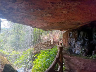 七洞溝古稱虎跳巖、飛泉峽,景區(qū)位于長壽之鄉(xiāng)、中國十佳生態(tài)養(yǎng)生旅游名縣、2019中國最美縣域——長寧縣境內(nèi),距成貴高鐵長寧站12公里,為典型丹霞峽谷地貌,森林覆蓋率高達(dá)96%,桫欏群落成片,每立方厘米負(fù)氧離子含量高達(dá)4.7萬個(gè),高居四川第一,夏季氣溫比宜賓市區(qū)低近10度,是著名避暑勝地和天然氧吧。