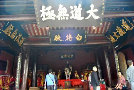風(fēng)洞樓下是白特殿。“特”是比馬還能跑的動(dòng)物,它馬頭、驢身、騾尾、牛蹄,俗稱“四不像”,古人說(shuō)“千里馬、萬(wàn)里特”。傳說(shuō)文昌帝君的坐騎就是全身色白的特,即“白特”,明代著名小說(shuō)家馮夢(mèng)龍?jiān)珜憣?duì)聯(lián):“梓潼帝君乘白特下臨凡界,三清老子騎青牛西出函關(guān)”。這座殿堂就因白特而得名。