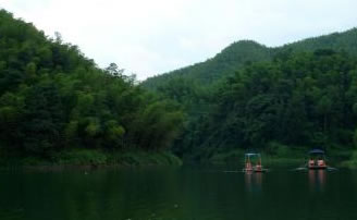 湖中有兩座不同的原形小島。湖水碧綠清澈,四周翠竹掩映,綠草如茵,附近有梅坪、古佛洞、涼風(fēng)洞、照妖鏡、七疊石等古跡。當(dāng)太陽起落時(shí),滿湖金色,萬道霞光,絢麗多彩。湖上可蕩舟劃筏,湖邊亭閣,也可品茗小酌。夏秋之夜,山巒沉郁而秀朗,清風(fēng)徐來,漣漪翩翩,湖邊納涼閑話,別有情趣。