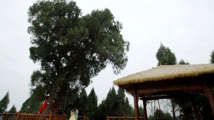 民間關(guān)于神仙樹的美麗傳說很多,相傳某年的八月八日,不知何方的一高一矮,一胖一瘦,一位仙風(fēng)道骨,一位邋遢放浪的老者,飄然來到尖包嶺,點石為枰,碎石為棋,以石為凳,手談對弈。棋勢變幻之間,四周時而雷霆激蕩,時而風(fēng)和日麗,時而萬物沉寂。這樣,不知過了多少時候,兩位老者抹掉棋枰,拂去棋子,背北面南,嘴里念念有詞,手里比比劃劃,頃刻間,尖包嶺大雨傾盆,繼而和風(fēng)細(xì)雨,云蒸霞蔚,兩位老者飄然而去,所坐之地變成了五花石,形如花瓣的五花石中間長出兩棵高低錯落、枝繁葉茂的翠柏。從此,人們就把翠柏叫作“神仙樹”,把 “尖包嶺”叫作“神仙梁”。又有民間記載:仙海湖所在沉香鋪(現(xiàn)名沉抗鎮(zhèn))是民間傳說《寶蓮燈》中三圣母之子沉香生長和得道升仙的地方。據(jù)《廣異記》載:沉香大孝,其母被二郎神楊戩壓于華山之下,沉香以神、斧打敗二郎神,劈山救母,而神仙樹就是沉香仙子母子二人化身而來的兩株古樹,交織相連,撐天而起,屹立山巔,母子倆以深情目光,凝視著天下樹,庇護(hù)這天下蒼生。