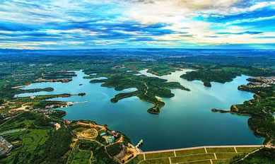淺丘環(huán)抱的仙海湖是川西北少有的大型人工湖,以自然和人文景觀為主。以自然和人文景觀為主。主要景點有仙海湖大壩、神仙樹、天龍山生態(tài)公園、皇柏古道、云蓋寺、觀音廟等,水域遼闊,島嶼眾多,相互穿插,形成曲折的湖岸,泊岸長達(dá)40余公里,形成“山抱水,水漫山”,“山襯水,水映山”,山水一色,水乳交融的天然畫卷。水質(zhì)清冽,為二級地表水,更有鸕鶿、白鷺、野生魚群等野生動植物,是一塊嘆為觀止的神奇寶地。