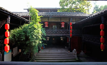王朝聞故居(添壽堂)位于古鎮(zhèn)進士牌坊下側,立木結構,是川南典型四合院,面積500平方米,院內天井50平方米,有明代古井一口,一方戲樓,三方廂樓,木雕精美。故居分為戲樓、正堂、客廳、臥室、天井、作坊室、偏房等。正堂供奉神龕、神案,左右置太師椅。作坊室是王朝聞少年時代使用的碾子、龍骨車、風簸、簸箕、撮箕、蓑衣、斗筐、鋤頭、犁耙等。
