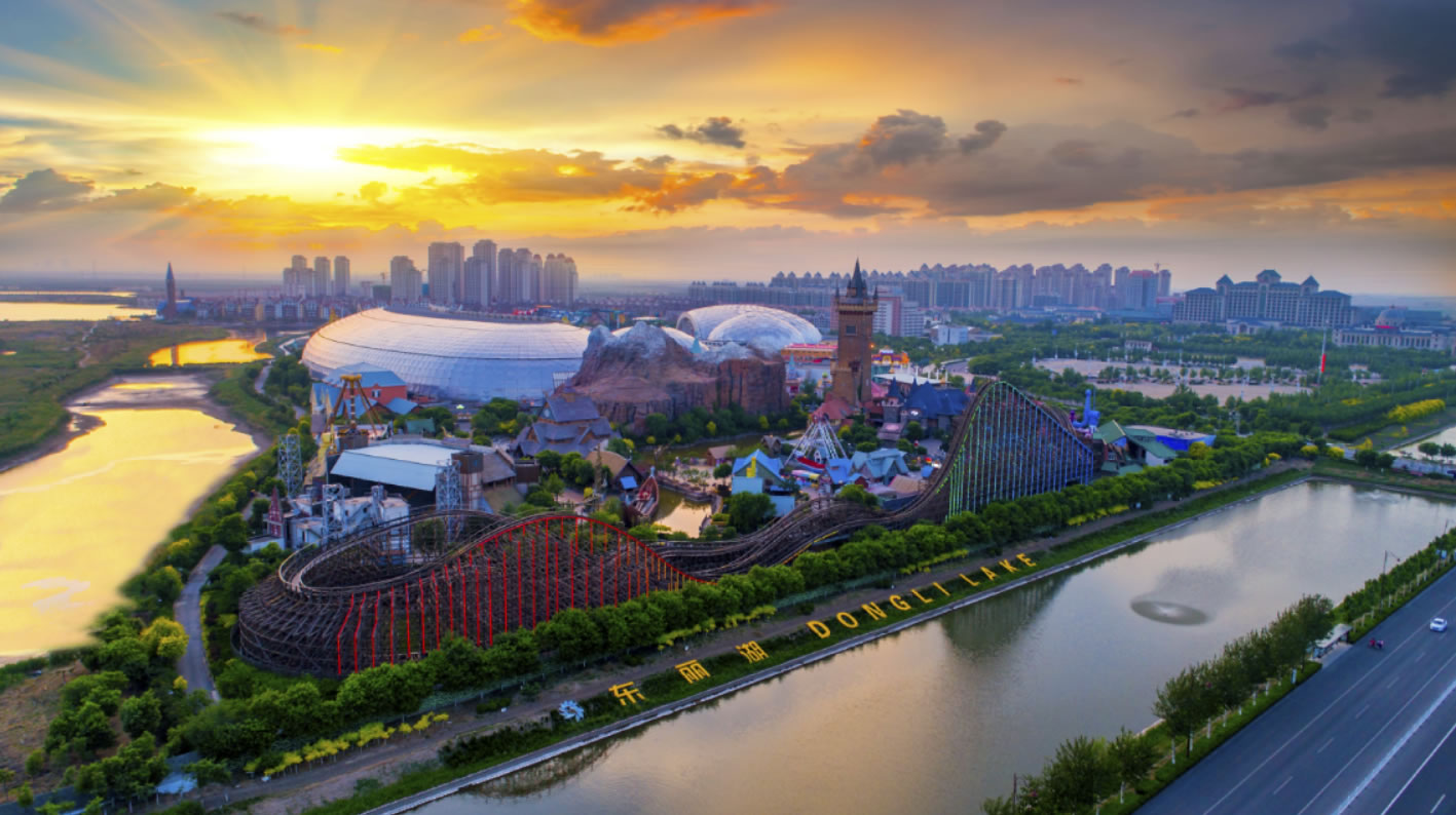 天津歡樂(lè)谷景區(qū)占地總面積20萬(wàn)平方米,由演藝中心、歡樂(lè)時(shí)光、維京海港、圣誕村四大游樂(lè)區(qū)構(gòu)成。