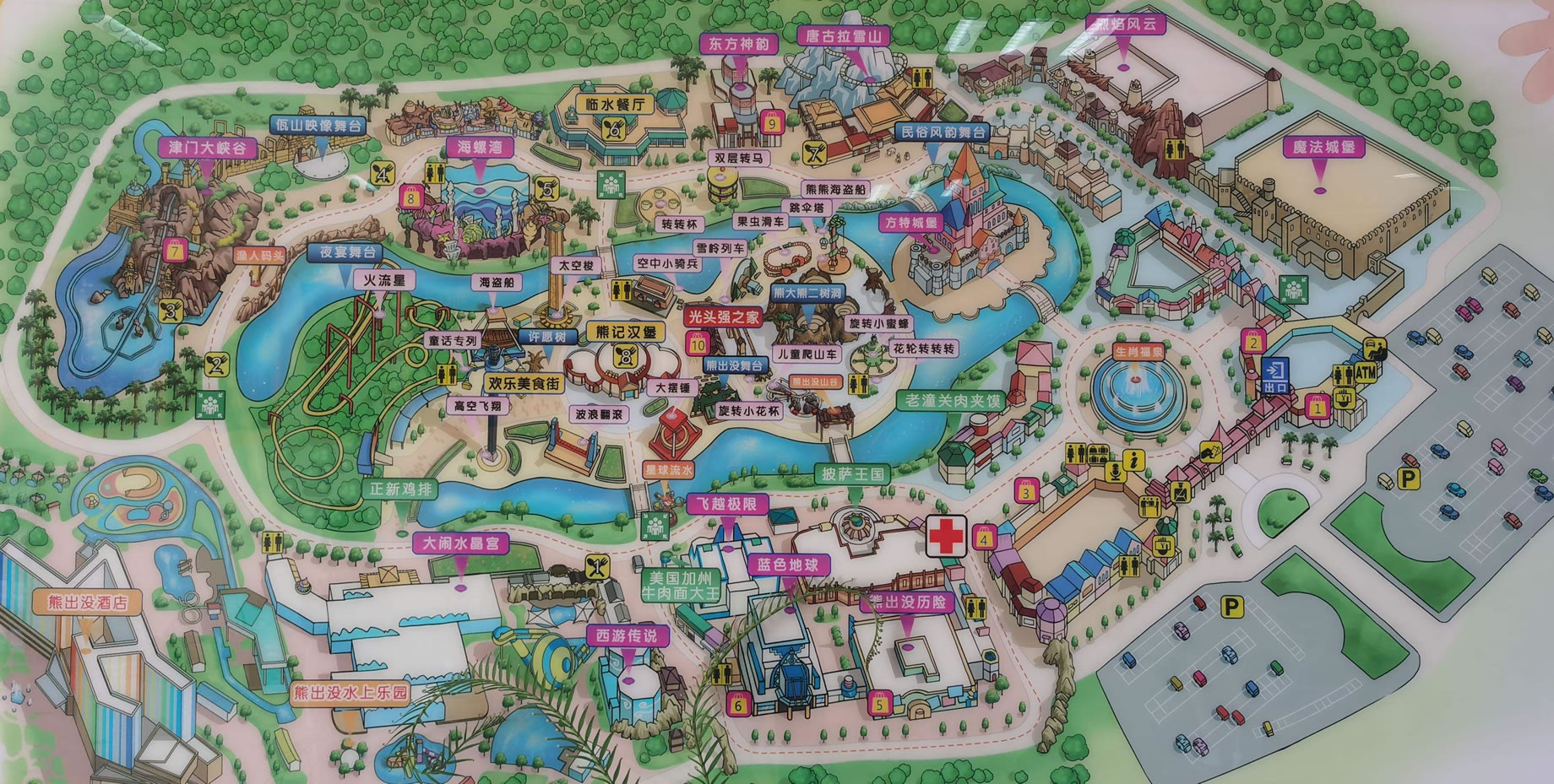 天津方特歡樂世界有高空飛翔體驗(yàn)項(xiàng)目“飛越極限”;動感DARK RIDE 魔幻表演項(xiàng)目“魔法城堡”;動感卡通射擊游戲項(xiàng)目“熊出沒歷險”;懸掛式過山車“火流星”;大型雪山探險模擬項(xiàng)目“唐古拉雪山”;色彩斑斕、如夢似幻的4D劇場項(xiàng)目“海螺灣”;妙趣詼諧的卡通表演項(xiàng)目“熊出沒舞臺”等等。
