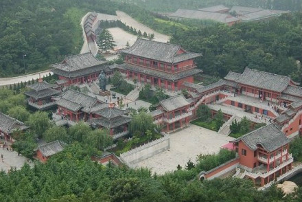 盤山五峰又稱五臺,紫蓋峰為中臺,自來峰為北臺,九華峰為東臺,舞劍峰為西臺,先師臺為南臺。自唐朝佛教的興起,盤山陸續(xù)修建了72座寺廟,13座玲瓏寶塔。因此,歷代帝王將相進山參禪禮佛絡(luò)繹不絕,成為佛教的圣地。與山西佛教圣地“五臺山”東西對應(yīng),稱“東五臺山”。中國佛教協(xié)會會長趙樸初手書的“東五臺山”就刻翠屏峰上,宿云亭旁邊有天津著名書法家題寫的“氣象萬千”四個大字,為雞毛隸書。