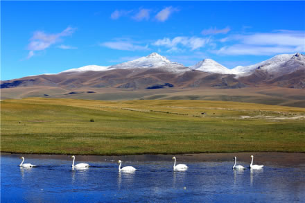 天鵝湖坐落在草原上,在新疆和靜縣巴音布魯克區(qū)政府約60千米的巴音鄉(xiāng)西南部。天鵝湖實(shí)際上是由眾多相互串聯(lián)的小湖組成的大面積沼澤地,這是中國第一個天鵝自然保護(hù)區(qū)。保護(hù)區(qū)水草豐茂,氣候濕爽。鳥類有128種,隸屬14目30科80余屬,其中雀形目53種,非雀形目75種;繁殖鳥95種,占74%,其中留鳥34種,棲息著中國最大的野生天鵝種群,是鳥類繁殖和渡夏的棲息地。獸類有20余種,其中,兩棲類2種,魚類5種。其中屬國家Ⅰ類保護(hù)的有8種,如雪豹、黑鸛、金雕、白肩雕等,Ⅱ級保護(hù)的有25種,如天鵝、盤羊、雪雞等。