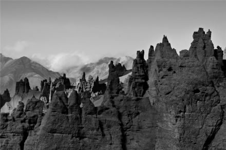 奎克烏蘇石林因位于天山山脈西段、那拉提山北麓的奎克烏蘇達(dá)坂之下而得名,石林區(qū)海拔3500米,長9千米,寬5千米,相對高度30米。石林似林非林,它是由半膠潔的砂礫巖層經(jīng)外營力的長期雕塑,變得千姿百態(tài),光怪陸離,石林中有“歐洲古堡”,肅穆森嚴(yán),有“寶劍出鞘”,刺破青天,有“行人走獸”,或臥或躺。