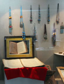 館中展出了在刀郎地區(qū)收集到的部分古老器物、錢幣、文牘、書(shū)籍,讓見(jiàn)證了物質(zhì)的刀郎;刀郎人古時(shí)勞作生活的塑像、古老的居室、用具、物品,則使通過(guò)時(shí)間的隧道,回到了古老的時(shí)代,與昔日的刀郎人對(duì)話。