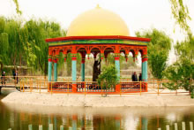 修建思音亭是為紀(jì)念刀郎古典音樂(lè)“十二木卡姆”的搜集、整理者阿曼尼沙罕。阿曼尼莎罕生于1526年,卒于1560年,是阿不都熱西提之妃。她天資聰穎、是位才華出眾、美麗過(guò)人的奇女子,是十五世紀(jì)杰出的刀郎女詩(shī)人,刀郎古典音樂(lè)“十二木卡姆”的搜集、整理者。13歲入宮,34歲因難產(chǎn)而逝。她生前拜訪社會(huì)藝人、詩(shī)人、民間歌手,整理創(chuàng)編出集刀郎古典音樂(lè)之大成的《十二木卡姆》,使民間音樂(lè)成為科學(xué)、系統(tǒng)、嚴(yán)謹(jǐn)?shù)那!妒究贰否Y名中外,是刀郎樂(lè)舞藝術(shù)的稀世瑰寶。刀郎人表演的十二木卡姆,便是經(jīng)過(guò)她整理、規(guī)范后的音樂(lè)。