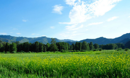 百花草場位于新疆富蘊縣可可托海風(fēng)景區(qū)額爾齊斯大峽谷,清澈的額河水從它的西側(cè)流過。有滿天星、野油菜花、映山紅、野菊花、刺薔薇等花草。