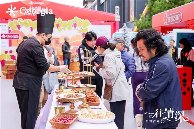 此外,活動現(xiàn)場飄著金卡利(牛肉湯包)、戈茲那基(蜂蜜核桃糖)、姆次瓦迪(格魯吉亞烤串 )等格魯吉亞特色美食的濃郁香氣,搭配當?shù)丶t酒,構成味蕾上的異國之旅。