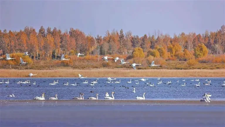 黨大朋介紹,隨著生態(tài)環(huán)境持續(xù)改善,這里已成為候鳥遷徙途中的重要補(bǔ)給站和棲息地。“這里目前已記錄到的鳥類超過150種,包括灰鶴、大天鵝、白鷺等國(guó)家重點(diǎn)保護(hù)鳥類。隨著遷徙高峰即將到來,會(huì)有更多候鳥陸續(xù)抵達(dá)。”黨大朋說。
