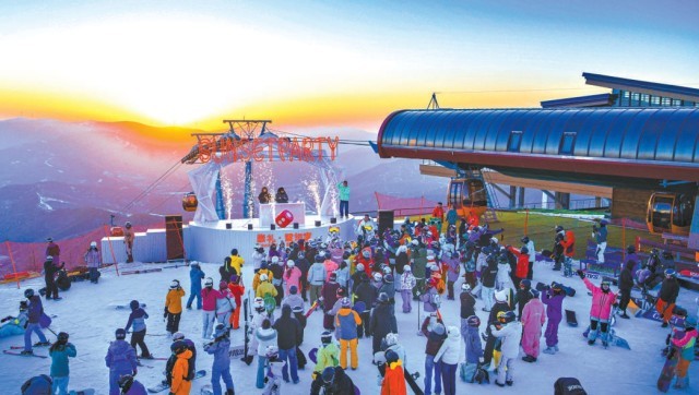 在崇禮,雪如意滑雪場(chǎng)舉行“落日派對(duì)”,吸引了眾多雪友參加。受訪者供圖