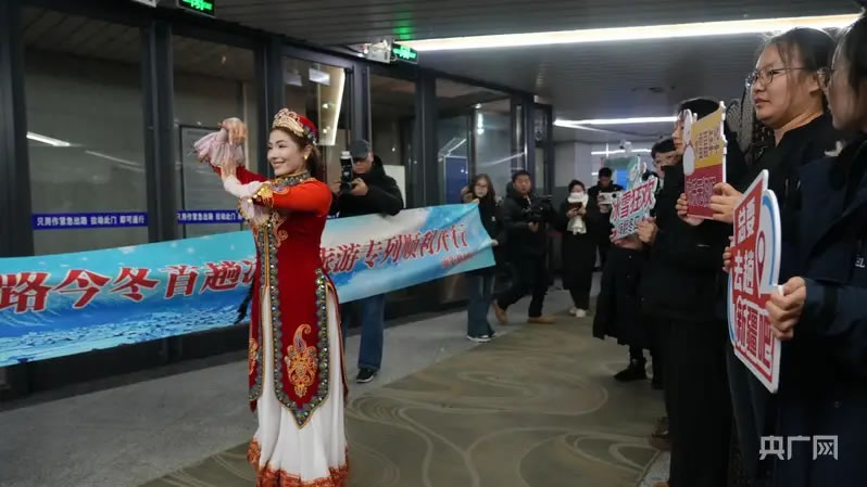 央廣網(wǎng)烏魯木齊12月13日消息(記者丁安)12月12日23時20分,隨著Y925次旅客列車從新疆烏魯木齊站鳴笛啟程,拉開了今冬新疆鐵路冰雪旅游的序幕。近百名來自浙江、江蘇、天津等地的游客乘坐專列,從烏魯木齊出發(fā)直達(dá)“中國雪都——阿勒泰”,開啟為期4天的冰雪之旅。
