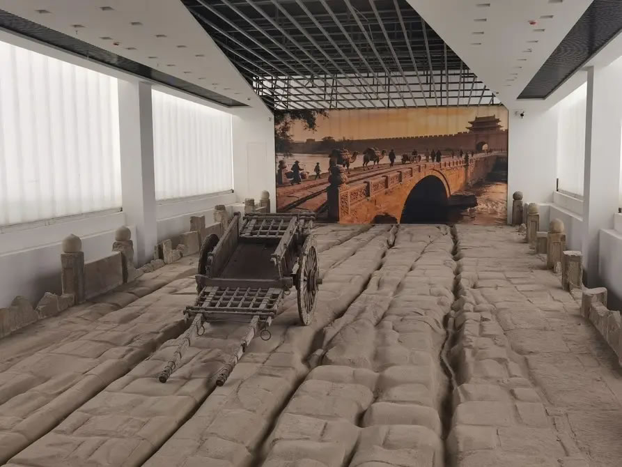 呈現(xiàn)在人們眼前的鎮(zhèn)遠(yuǎn)橋為黃砂巖條石砌筑的單孔拱橋,造型古樸,結(jié)構(gòu)穩(wěn)固。橋體殘長22米,寬17米,拱高3.5米,保存有橋拱、橋身、雁翅駁岸等部分。尤為珍貴的是,橋面清晰保留有4道深淺不一的車轍痕跡,其中最深處達(dá)10厘米,生動見證了明清時期太原城商旅絡(luò)繹、車馬穿行的繁盛景象,是晉商活動與北方商貿(mào)往來的一份無聲檔案。