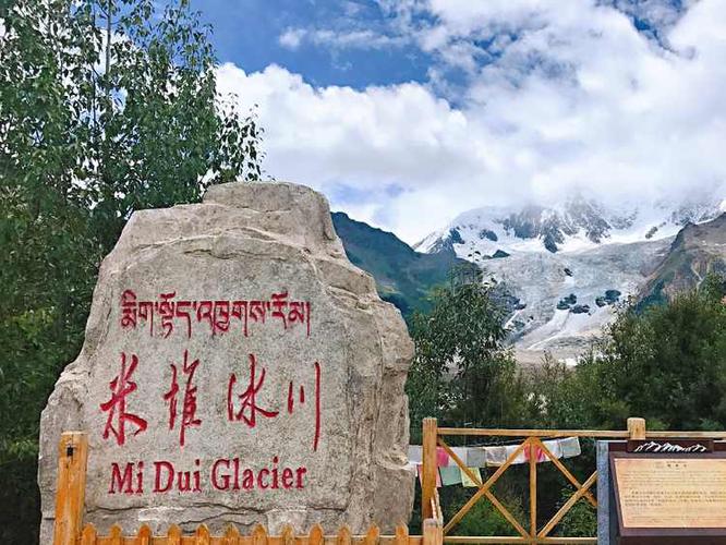 米堆冰川位于波密縣玉普鄉(xiāng)米美、米堆兩村,距縣城所在地扎木鎮(zhèn)90多公里。米堆冰川主峰海拔6800米,雪線海拔只有4600米,末端海拔只有2400米。冰川下段已穿行于針闊葉混交林帶,為西藏最重要的海洋型冰川之一。 米堆冰川由世界級(jí)的冰瀑布匯流而成,每條瀑布高800多米,寬1000多米,兩條瀑布之間還分布著一片原始森林。冰川周邊山花爛漫,林海蔥蘢舞銀蛇。冰川下段已穿行于針闊葉混交林帶,是西藏最主要的季風(fēng)海洋性冰川、中國(guó)三大海洋冰川之一。