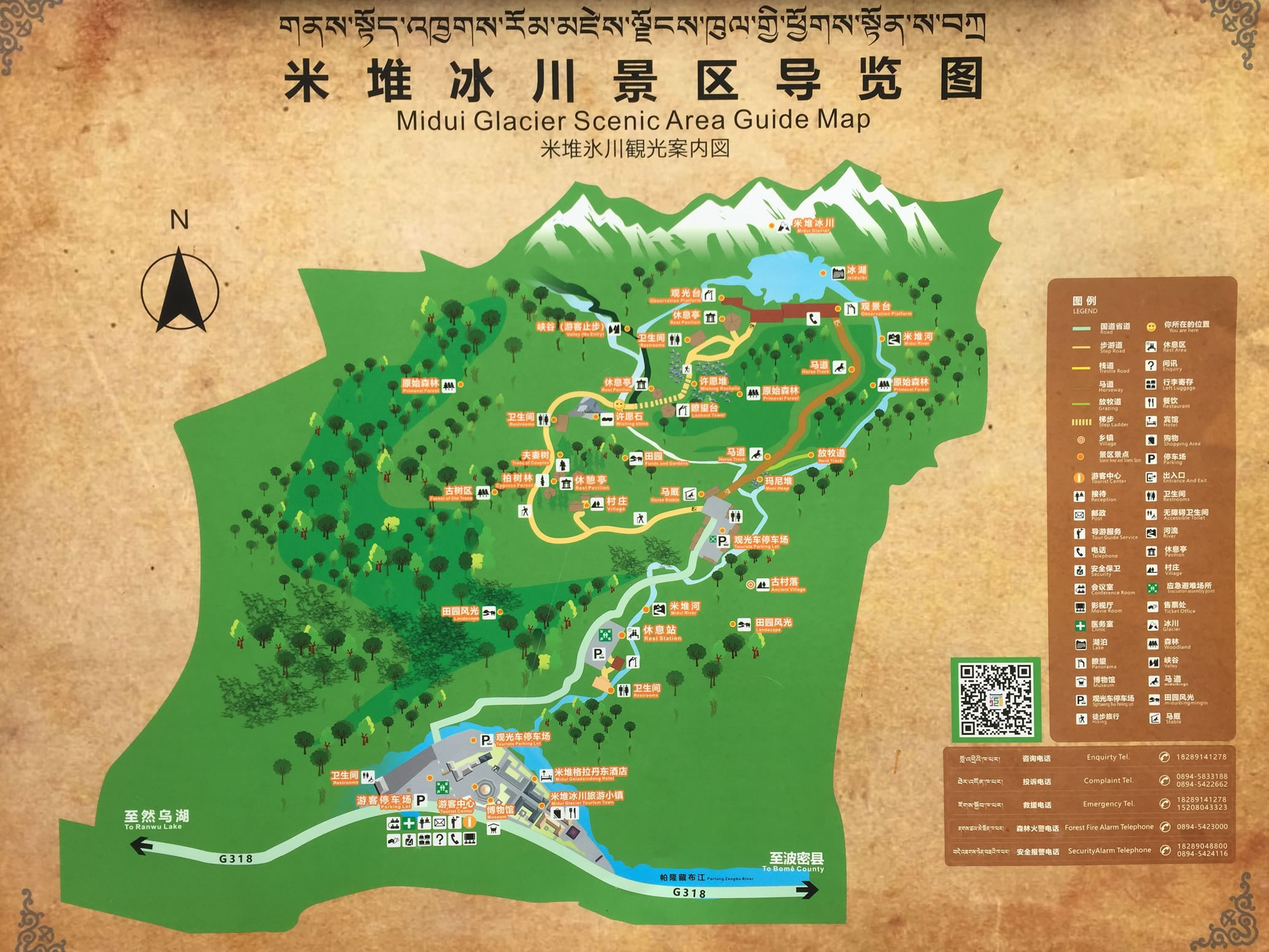 米堆冰川冰潔如玉、景色優(yōu)美、形態(tài)各異、姿態(tài)迷人,周?chē)谐扇旱呐Q、古樸的藏式民居、雄偉壯觀的雪山,有常年不離的攀羊、猴子等野生動(dòng)物。此處旅游資源豐富,氣候濕潤(rùn),物產(chǎn)豐富,交通便利,開(kāi)發(fā)潛力巨大,可操作性強(qiáng)。米堆村位于西藏八宿縣然烏鎮(zhèn)與波密縣城之間。雖然米堆屬于波密縣,但從然烏鎮(zhèn)前往比從波密縣城要近得多。從川藏公路進(jìn)入米堆的岔路口沒(méi)有標(biāo)志,但這個(gè)岔路口處于川藏公路上的“米堆一號(hào)”明洞和“米堆二號(hào)明”洞之間,比較容易找得到的。