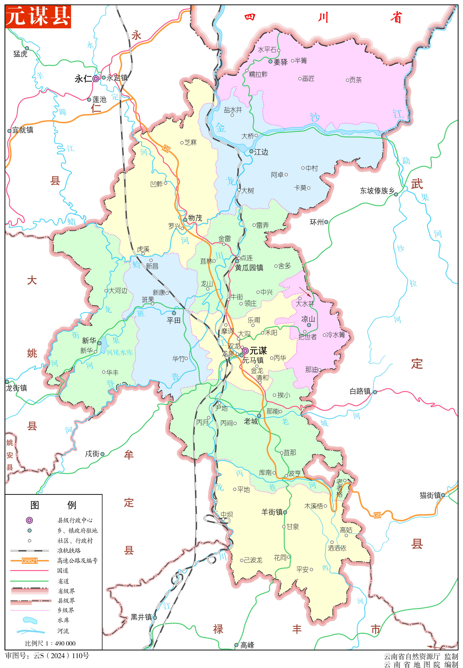 水文 河流屬金沙江水系,常流河19條,季節(jié)河43條。金沙江、永定河北來(lái)入境,龍川江南來(lái)穿境,蜻蛉河、班果河、動(dòng)崗河西來(lái)過(guò)境,江河聚會(huì)江邊龍街,匯入金沙江,東北向出境。