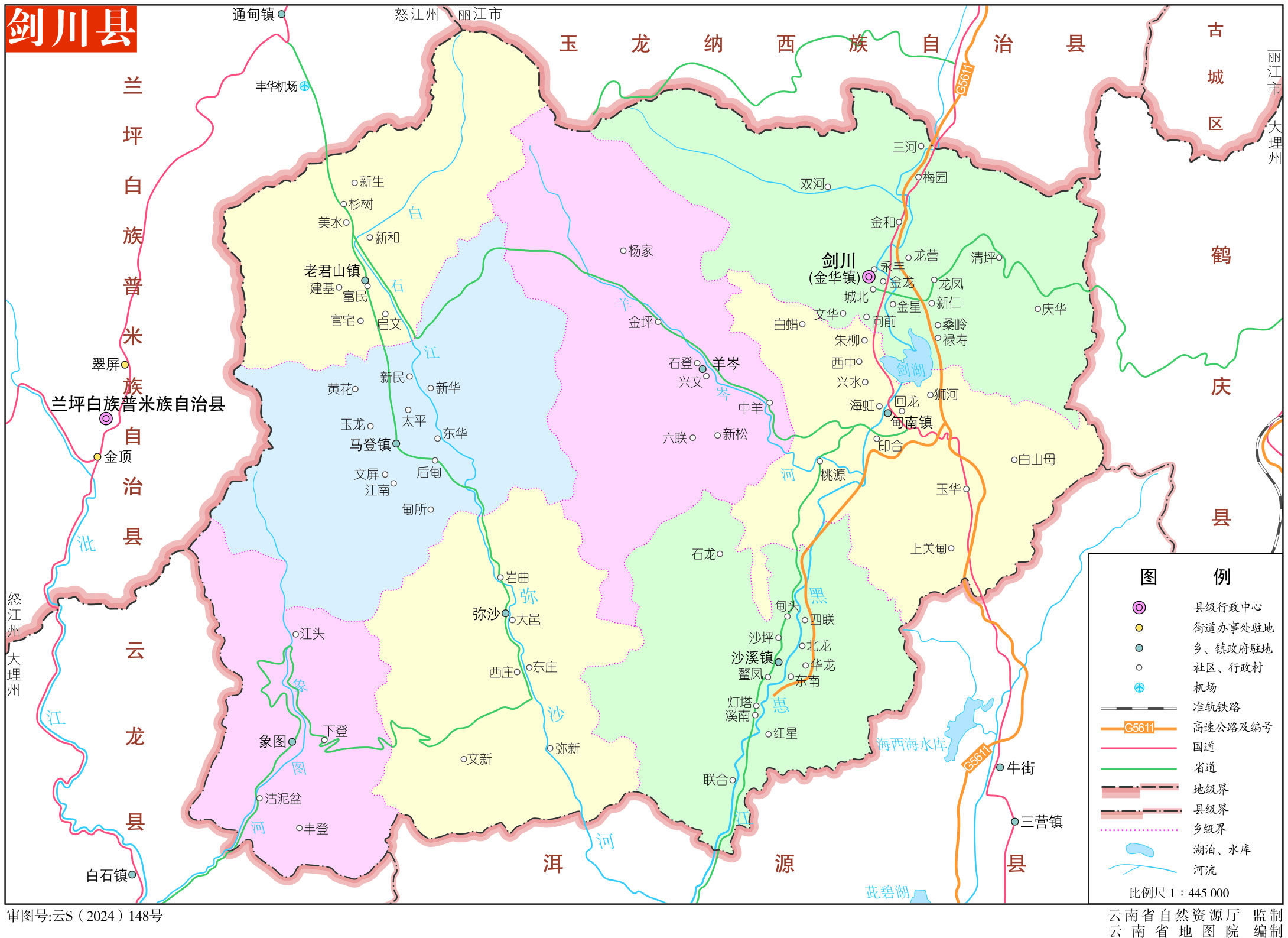 劍川縣轄5個(gè)鎮(zhèn)、3個(gè)鄉(xiāng):