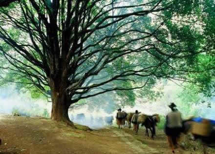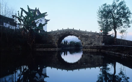 古樹群下,一條歷經數(shù)百年滄桑的火山石古驛道蜿蜒西去,與村前的捷報橋相連。一輩輩的和順人先到千手觀音古樹群下許下祈福求財?shù)脑竿,然后從這條古驛道上懷揣著有朝一日能從村口的捷報橋上衣錦還鄉(xiāng)的夢想,開始“走夷方” 。