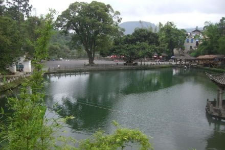 和順龍?zhí)稙榈叵掠咳纬,潭方?shù)十畝,碧波蕩漾,水體澄澈,游魚可數(shù),潭周邊以精美石欄飾之,潭中石亭翼然,潭畔古木蒼天。