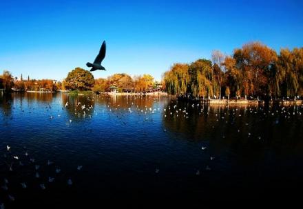 翠湖位于昆明市五華山西麓,占地面積352畝。湖東北有“九泉所出,匯而成池”,故又名“九龍池”。堤畔遍植垂柳,柳枝拂面,湖內多種荷花,藕花飄香,舊有“十畝荷花魚世界,半城楊柳撫樓臺”之聯(lián),被譽為“城中碧玉”。有亭、臺、回廊、曲橋等建筑,其建筑精致玲瓏,亭閣均有匾對,歌詠園中的景觀。
