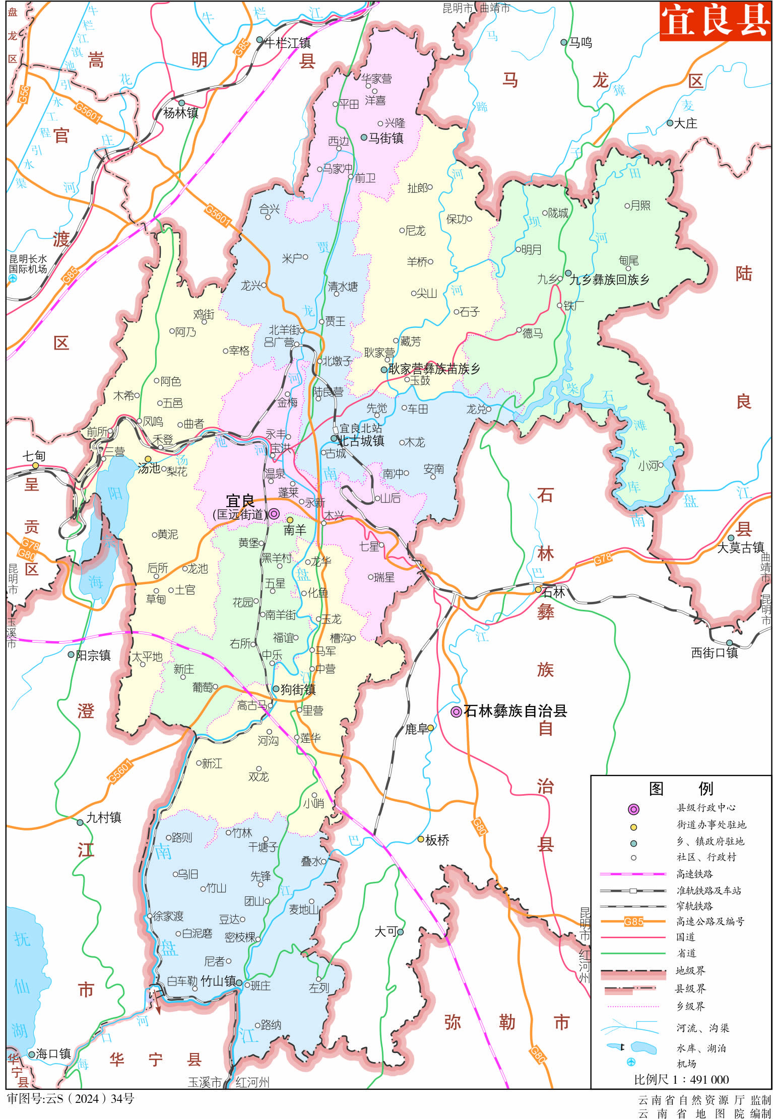 宜良縣轄3個(gè)街道、4個(gè)鎮(zhèn)、2個(gè)鄉(xiāng):