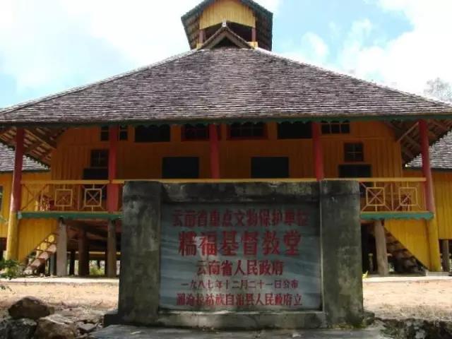 糯福鄉(xiāng)基督教堂清宣統(tǒng)二年(1910年)美國基督教浸信會緬甸景棟教會派牧師到孟連東乃等地傳教。民國五年(1916年),派撒臘比布到瀾滄?zhèn)鹘獭C駠拍辏?920年),美國牧師主持糯福教務,于民國十一年(1922年)修建教堂。糯福教堂為瀾滄、雙江、滄源、耿馬等地的基督教會總部。為便于傳教,永偉業(yè)用拉丁字母為拉祜族創(chuàng)造了拉祜文字。糯福教堂總面積506.6平方米,融合西洋與當?shù)孛褡褰ㄖ问健?987年被列為省級文物保護單位。