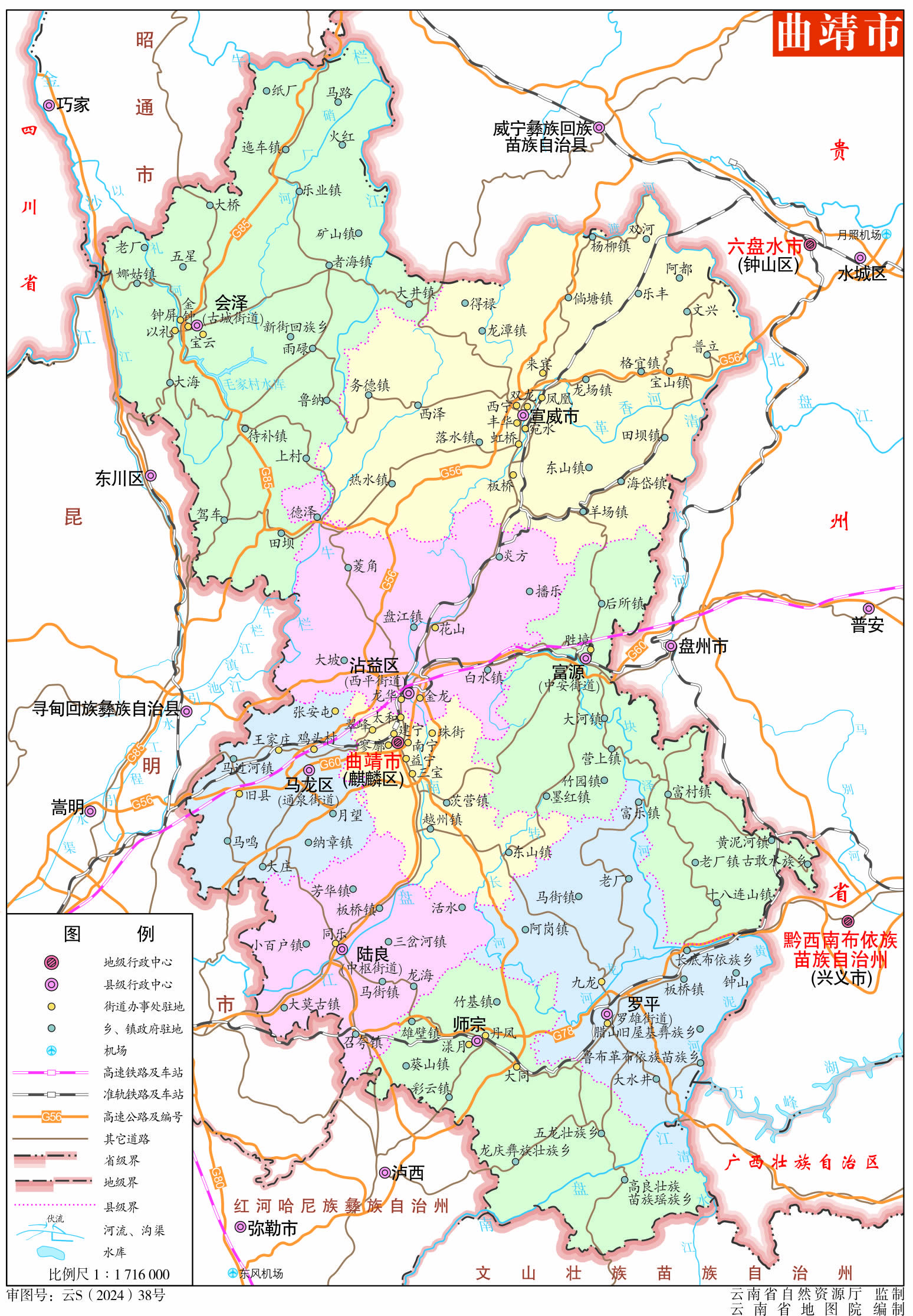 曲靖市轄3個(gè)區(qū)、5個(gè)縣、1個(gè)縣級(jí)市: