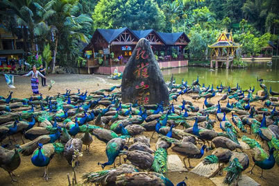 通過漂流,獲得利用自然、征服自然的快慰。此區(qū)還建有一座孔雀園,飼養(yǎng)著400多只綠孔雀,讓人觀賞孔雀開屏,與孔雀留影紀(jì)念。西雙版納觀光旅游區(qū),分布有大面積的熱帶溝谷雨林,游客可順游覽道深入西雙版納林中探秘。雨林內(nèi)有猿猴棲息,有彩蝶繁殖,西雙版納犀鳥、野牛等珍稀動(dòng)物也偶有出現(xiàn)。幸運(yùn)的游人會(huì)遇到猿猴攀枝嬉戲、西雙版納犀鳥在林中覓食的情景。