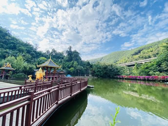 公園占地面積26310畝,園內(nèi)森林覆蓋率為98.6%,是目前北回歸線以南保存最完好的一片原始森林,它的自然優(yōu)勢(shì)融匯了原始森林神奇的自然風(fēng)光和濃郁的民俗風(fēng)情,集中突出體現(xiàn)了"熱帶溝谷雨林"、"以孔雀文化為主的野生動(dòng)物展示"、"以哈尼族-愛尼人為主的民俗風(fēng)情展示"三大主題特色,同時(shí)配備有按四星級(jí)打造集客房、餐飲、會(huì)務(wù)、娛樂為一體的孔雀山莊度假村。"勐巴拉納西"是一個(gè)充滿美好、理想和神奇的地方,旖旎的自然風(fēng)光、翡翠般的森林、絢麗多姿的民族風(fēng)情,膠園、茶園、瀾滄江。