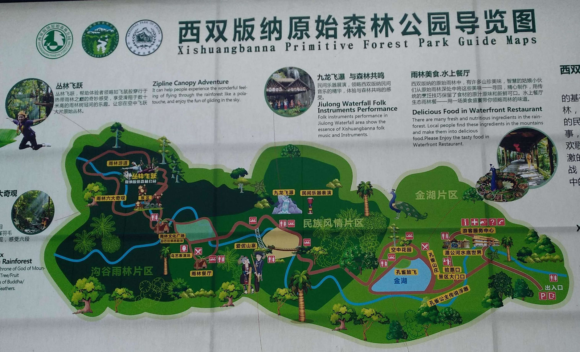 中心游憩區(qū),建有娛樂中心,會(huì)議服務(wù)中心,西雙版納民族歌舞餐廳,停車場(chǎng)所?蔀榭腿嘶I辦會(huì)議,組織娛樂活動(dòng),西雙版納學(xué)術(shù)交流,貿(mào)易洽談會(huì)……。西雙版納原始森林公園,森林密布,山青水碧,游覽面積寬闊,西雙版納民俗活動(dòng)多樣,服務(wù)設(shè)施齊全。游人們可以在此飽覽風(fēng)光,體驗(yàn)西雙版納民族風(fēng)情,獲得美的享受。