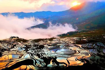 其次,哀牢山特定的地形、氣候等自然條件也決定了元陽(yáng)哈尼梯田必然形成為最壯麗、獨(dú)特的奇觀。
