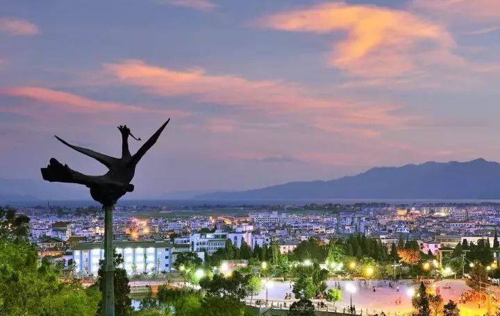 九苞鳳城,是指市區(qū)及城北的舞鳳山,土色粉紅,形同九頭丹鳳凌空翱翔。山溝梁王山的中支逼迫而來(lái),如鳳首覽輝,左右兩山其勢(shì)如同鳳凰展翅。澂江古城,城墻高一丈九尺,方圓五華里零三分,門樓巍峨,南北的大街如書軸,東西的房屋相連,如打開的書卷,故有丹鳳銜書之稱。