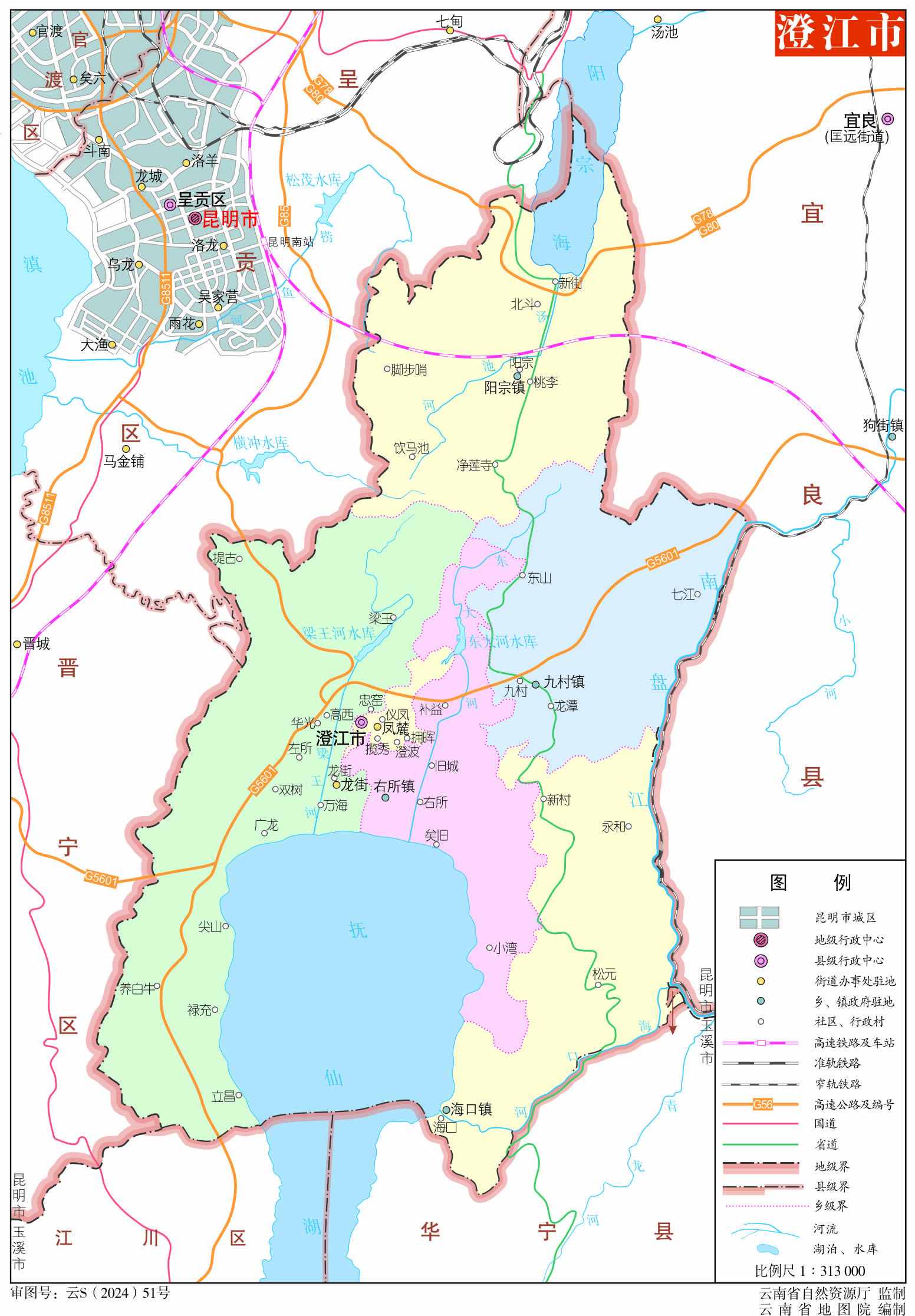 位置境域 澄江市地處滇中,位于云南省省會(huì)昆明市東南,東沿南盤江與宜良縣為界,南隔撫仙湖與江川區(qū)、華寧為鄰,西與呈貢、晉寧接壤,北含陽(yáng)宗海與昆明市呈貢區(qū)、宜良縣毗連。距昆明市區(qū)52千米,距玉溪市區(qū)87千米,總面積916平方千米。