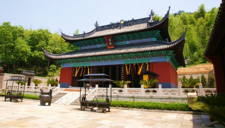 禹廟位于禹陵北側(cè),為歷代帝王、官府和百姓祭祀大禹的地方。禹王廟坐北朝南,周以丹墻。是一組宮殿式建筑群,總體布局沿南北軸線展開(kāi),前低后高,左右對(duì)稱,主要建筑物自南而北,依次為照壁、岣嶁碑亭、欞星門、午門、拜廳、正殿,依山勢(shì)逐漸上升,禹王廟之照壁與南墻相連。順山勢(shì)逐步升高,殿前鋪設(shè)石階。配以窆石亭、宰牲房、菲飲泉等景點(diǎn)。(史籍記載,夏啟和少康都曾建立禹廟,但已難考)。今廟始建于南朝梁武帝大同十一年(公元545年),歷代屢建屢毀,F(xiàn)存大殿建筑系民國(guó)二十二年(公元1933年)重建,其余部分為清代重建。